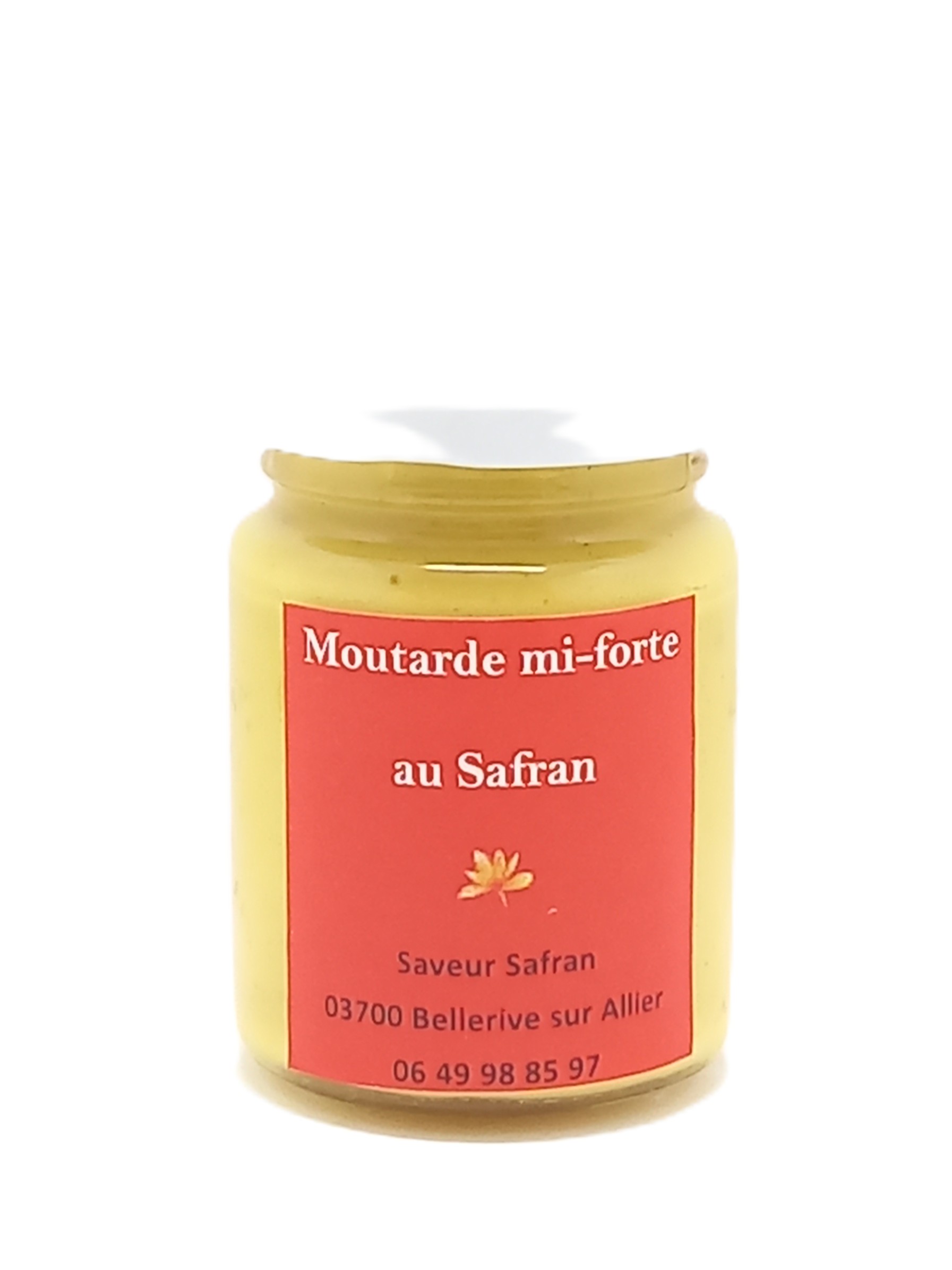 Composition : moutarde mi forte, vinaigre de cidre et pistils de safran.